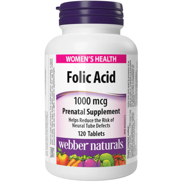 Kyselina listová od spoločnosti Webber Naturals je zásadná prenatálna výživa, ktorá sa užíva pred a počas skorého štádia tehotenstva, aby sa zabránilo defektom nervovej trubice. Každá tableta obsahuje 1 mg folátu a vitamín B, ktorý je potrebný na metabolizmus bielkovín, tvorbu červených krviniek, tvorbu DNA a zdravý vývoj plodu.