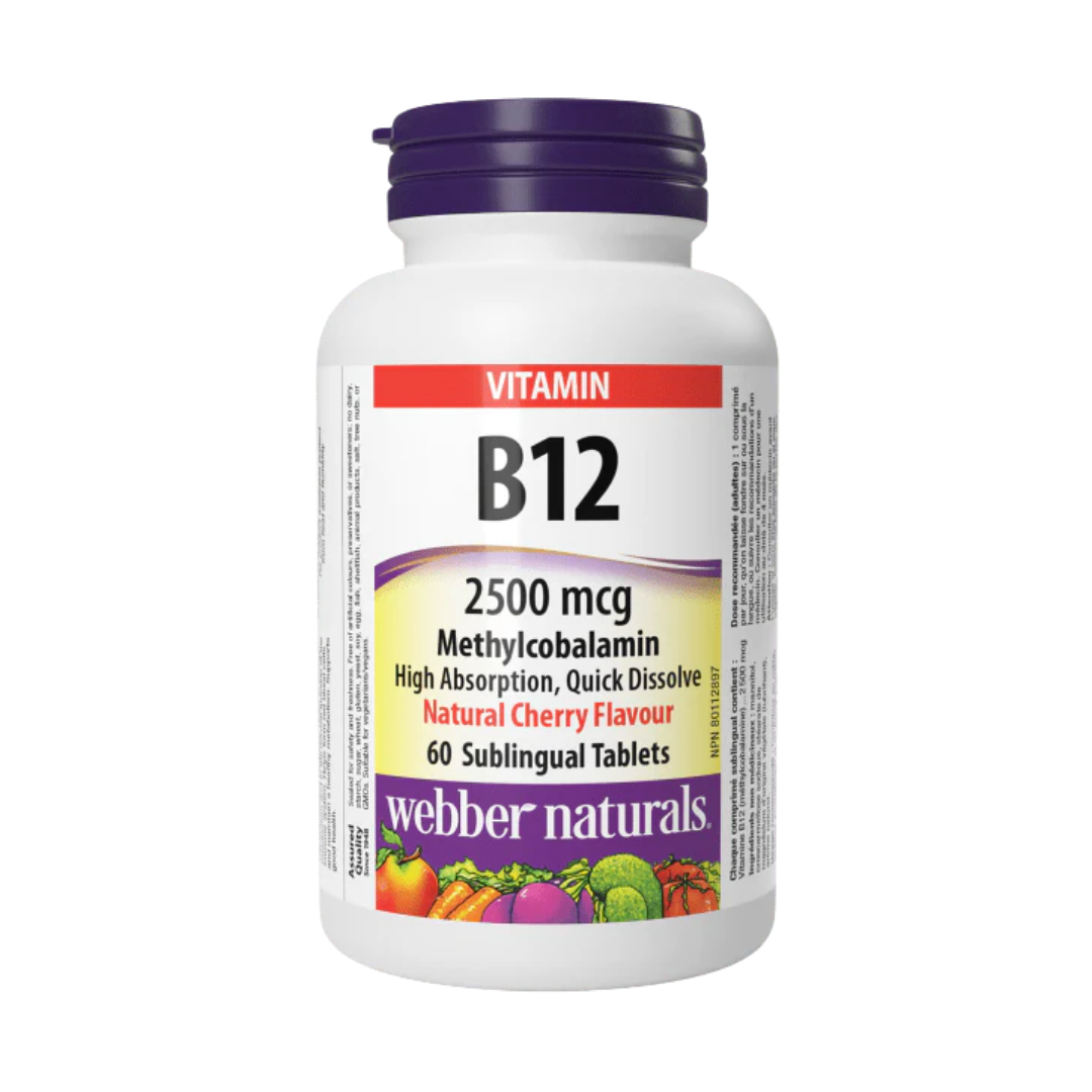 Hladina B12 sa dá účinne zvýšiť doplnením rozpustného metylkobalamínu, vysoko biologicky dostupnej formy B12, v tejto 2500 mcg tablete od spoločnosti Webber Naturals. Má prírodnú čerešňovú príchuť, je vhodnou alternatívou k injekciám B12 a je vhodný pre vegetariánov a vegánov. Metylkobalamín, aktívna forma B12, sa ľahšie vstrebáva a zostáva v tele dlhšie, zatiaľ čo iné formy, ako je kyanokobalamín, sa musia v dvojkrokovom procese previesť na metylkobalamín. Metabolizuje cukry, tuky a bielkoviny. Produkuje červené krvinky a zabraňuje nedostatku vitamínu B12.
